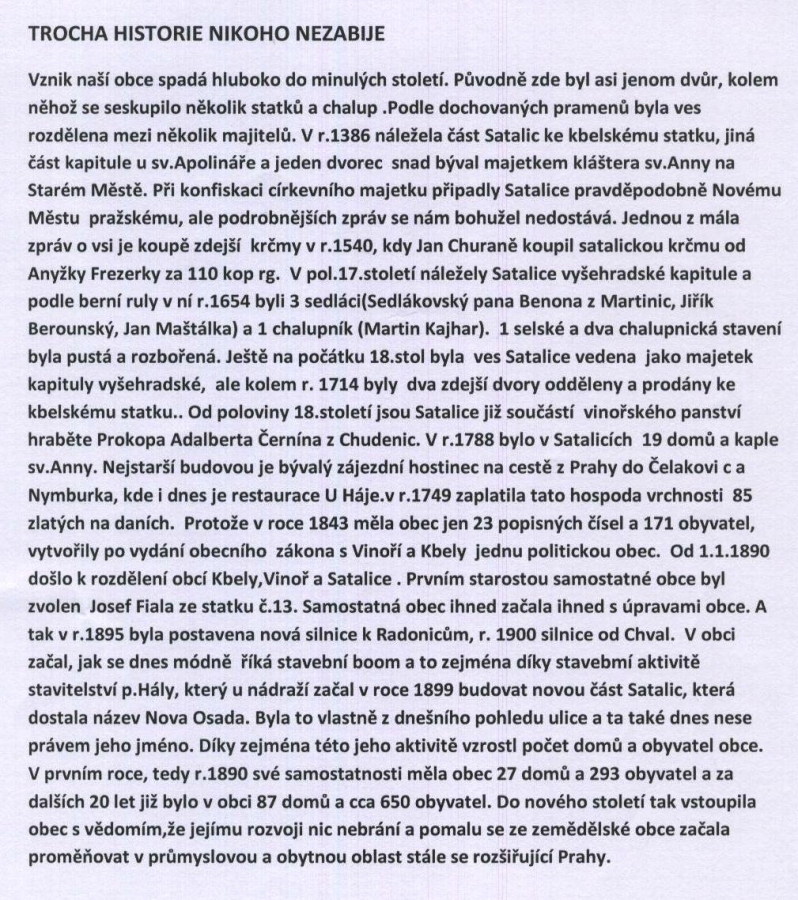 Satalice ve století minulém a kousíček i v předminulém